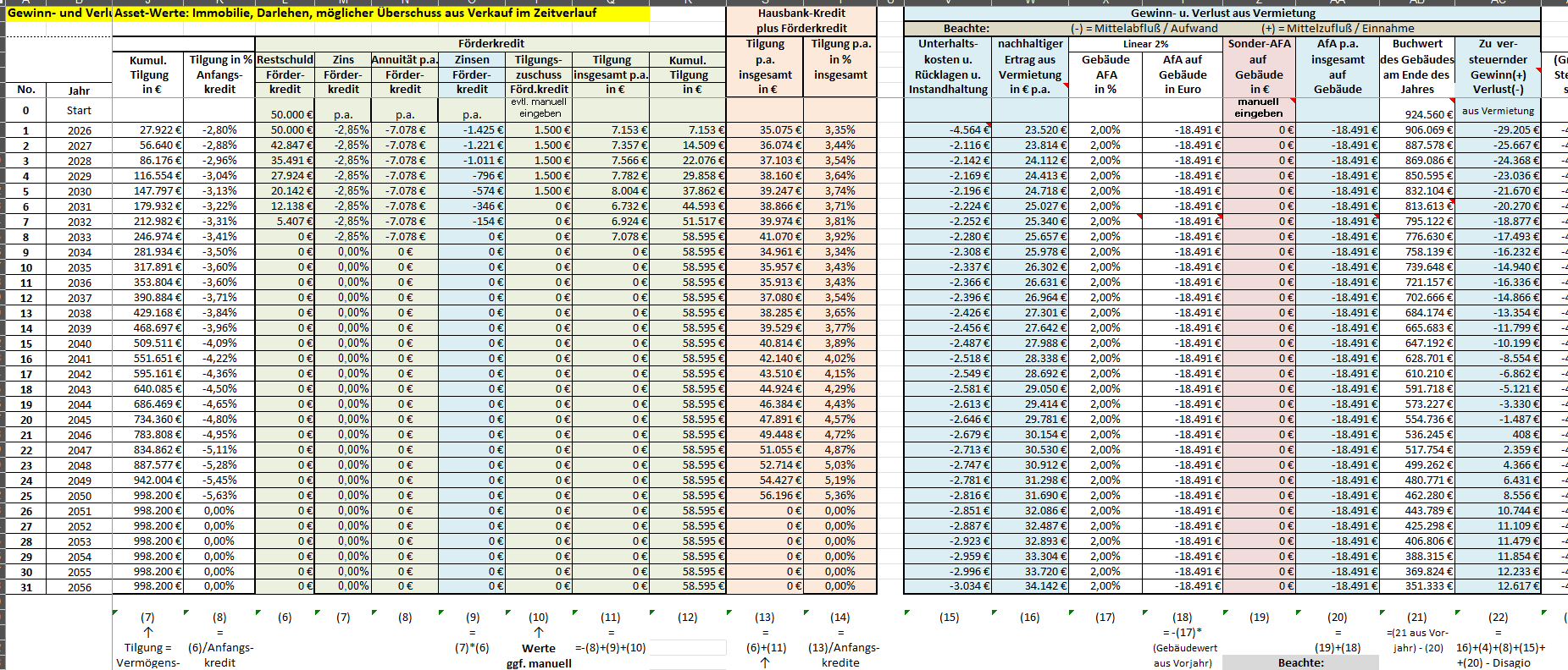 An Stelle eines Förderkredits kann dieser Eingabe-Bereich für einen 2. Anfangskredit mit unterschiedlichen Konditionen und unterschiedlicher Laufzeit genutzt werden.