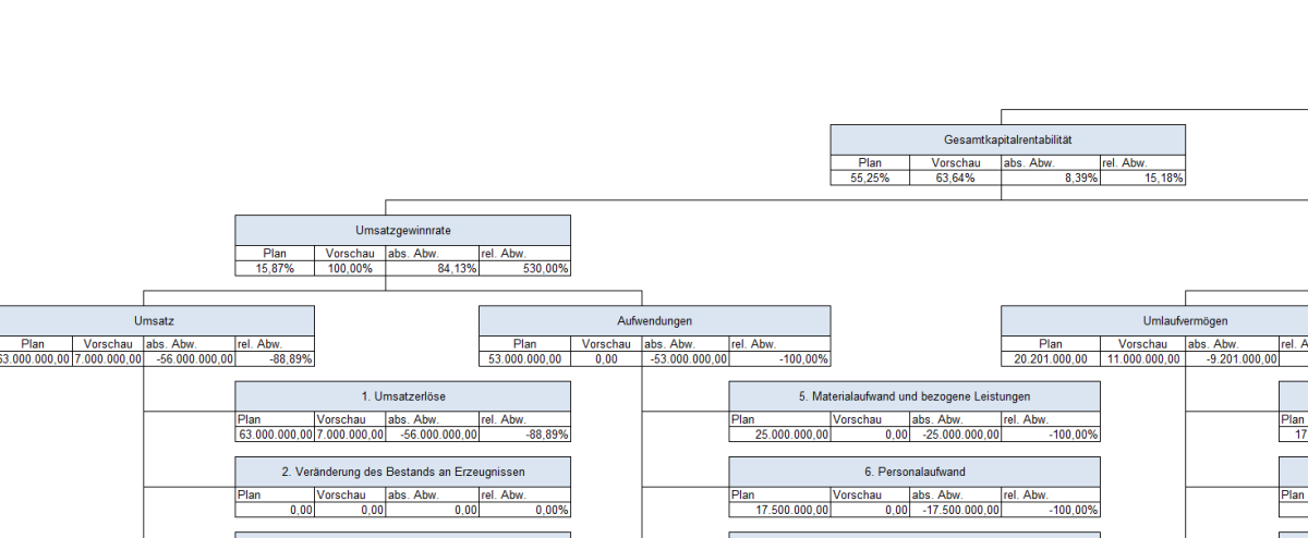 • Soll- / Ist-Vergleiche für Bilanz, GuV und Kapitalflussrechnung